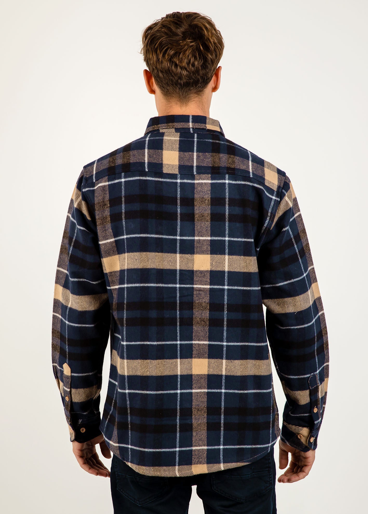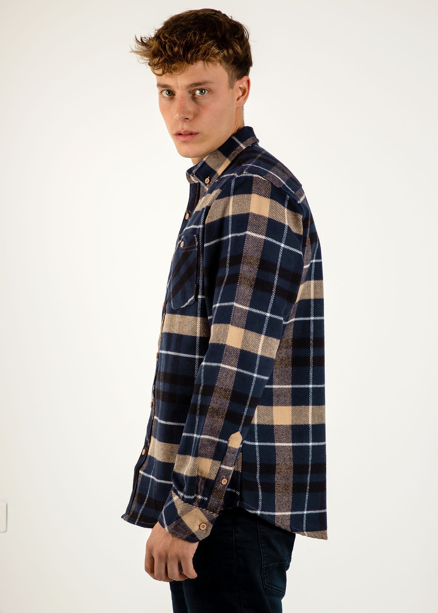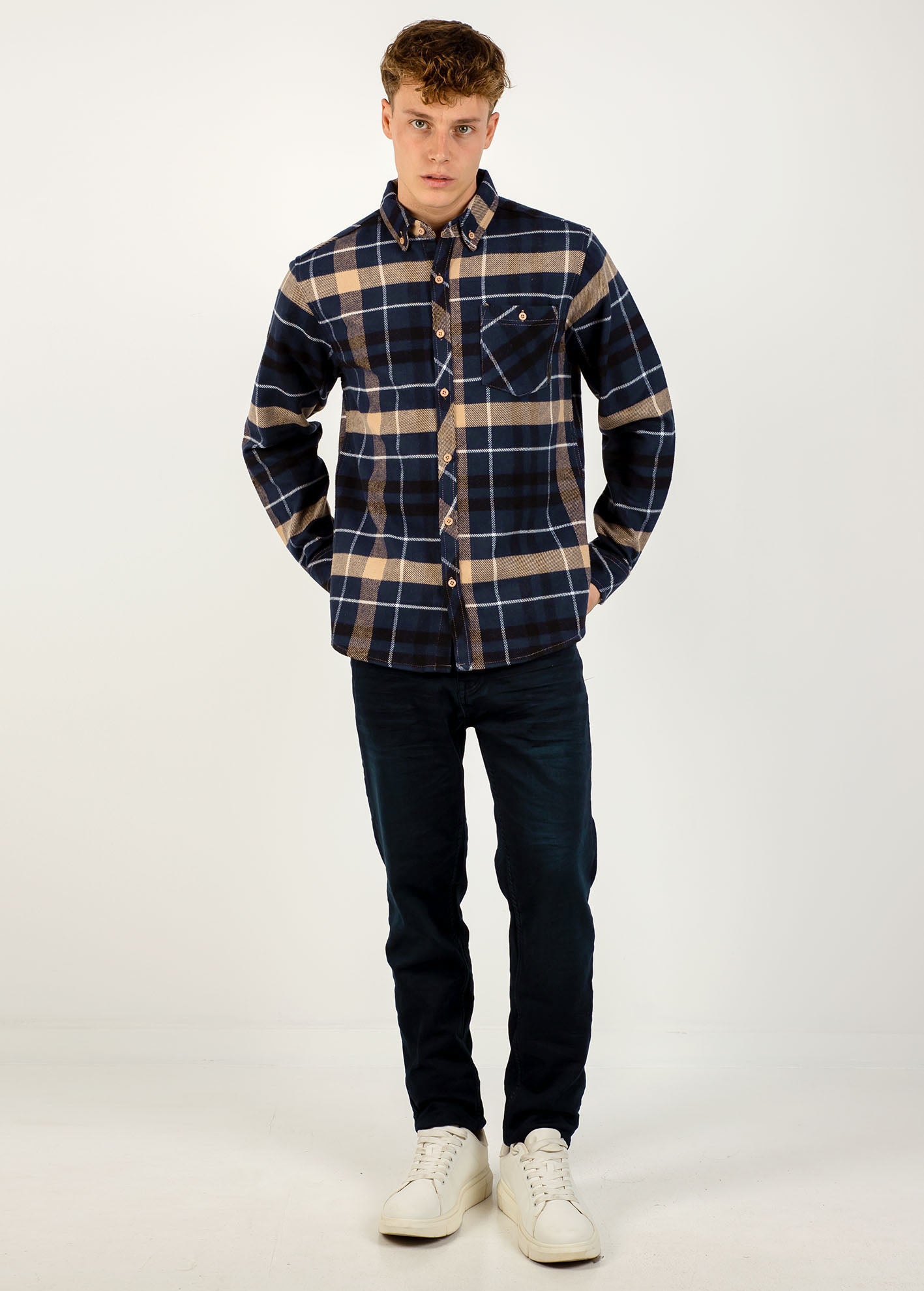 Πουκάμισο relaxed fit από βαμβακερό ύφασμα με φινίρισμα φανέλας. Γιακάς και μακρύ μανίκι που καταλήγει σε μανσέτα με κουμπί. Τσέπη patch στο στήθος. Κλείσιμο μπροστά με κουμπιά.