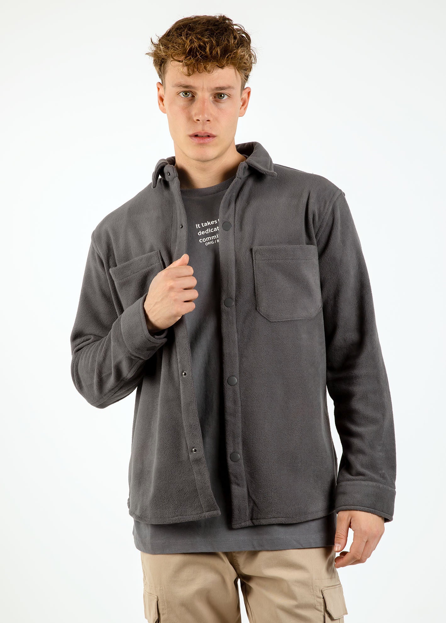 Πουκάμισο - τζάκετ fleece με μεκρύ μανίκι, γιακά και τσέπες patch μπροστά. Κλείσιμο με κουμπιά.