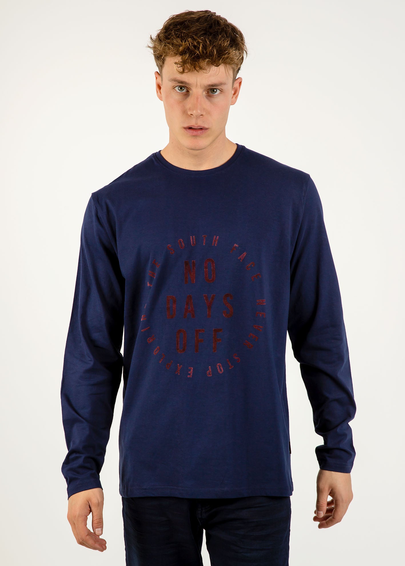 Ανδρική μπλούζα με μακρύ και τύπωμα "Days off"-BLUE NAVY