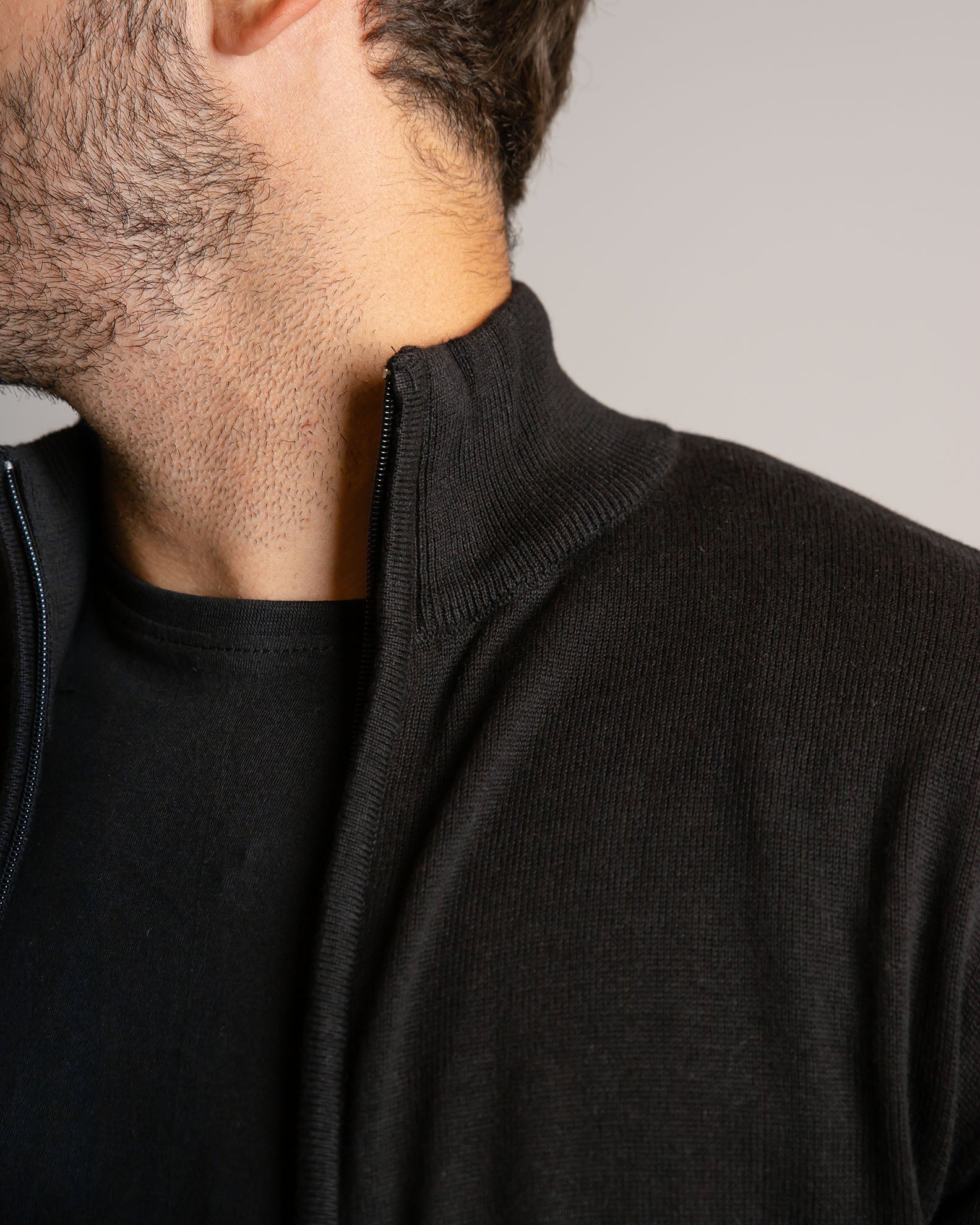 Men's Yarn Jacket with Zipper 'Alfredo'-BLACK