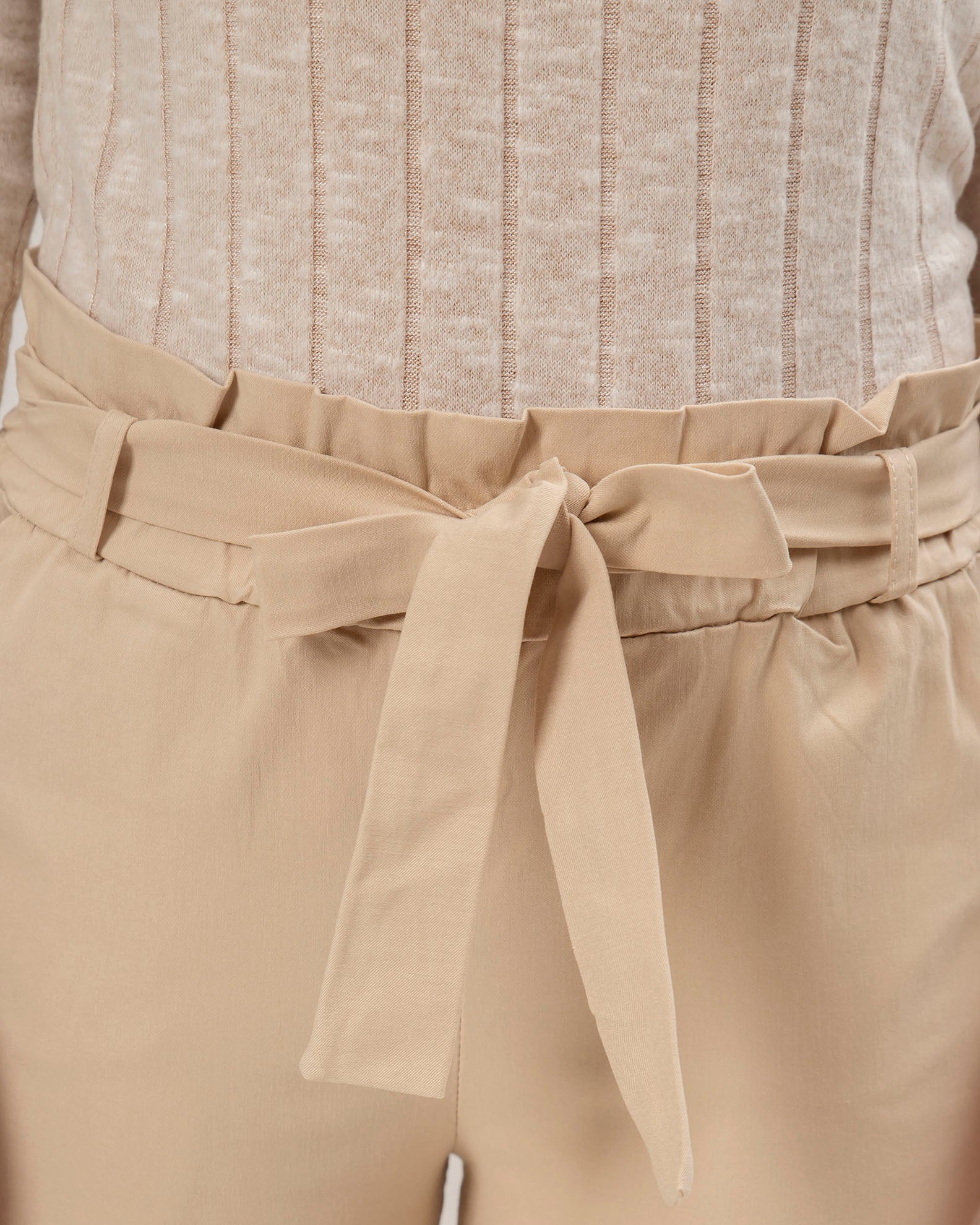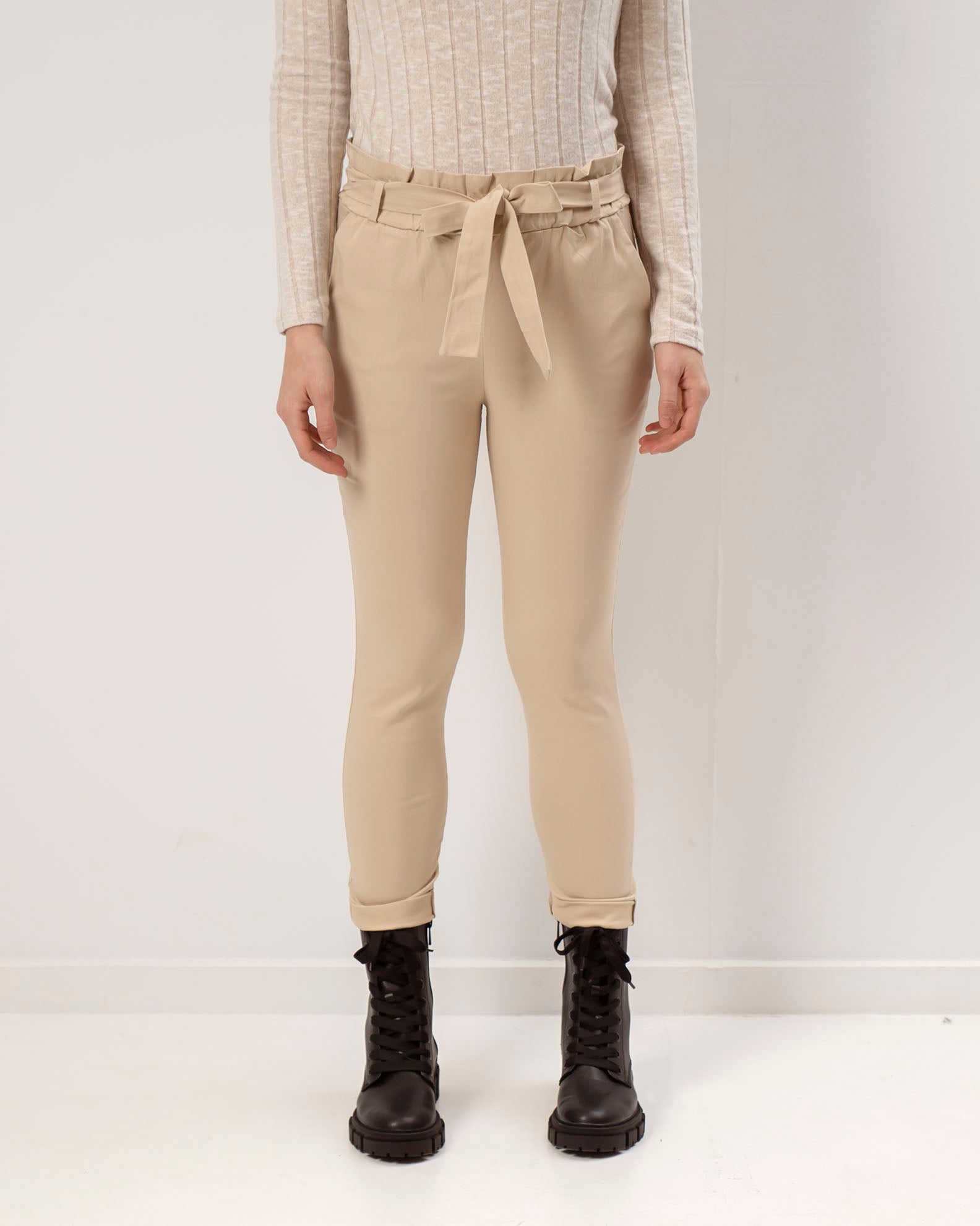 Παντελόνι με ίσιο μπατζάκι, τσέπες στα πλάγια και ελαστική μέση με ασορτί ζωνάκι.
