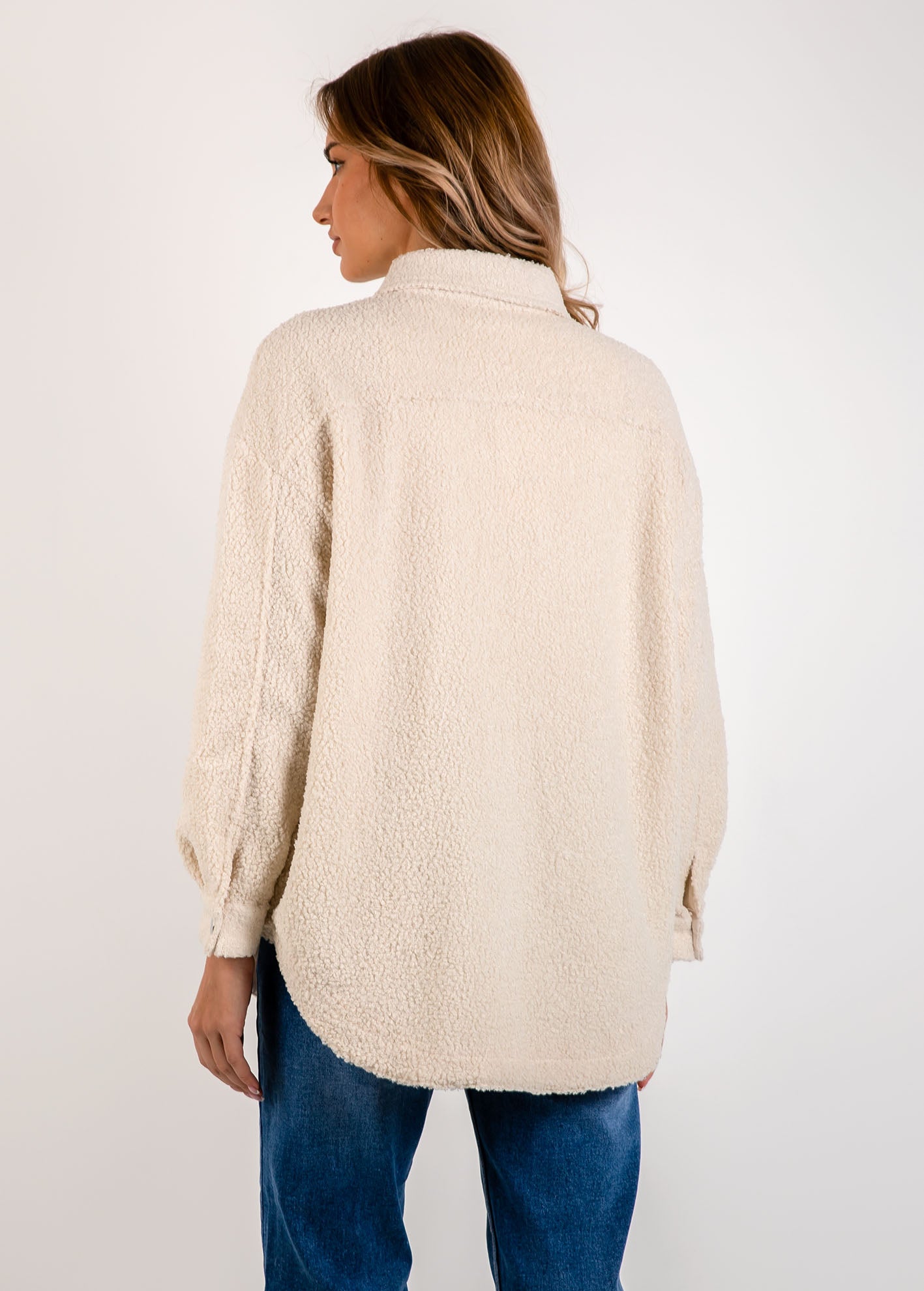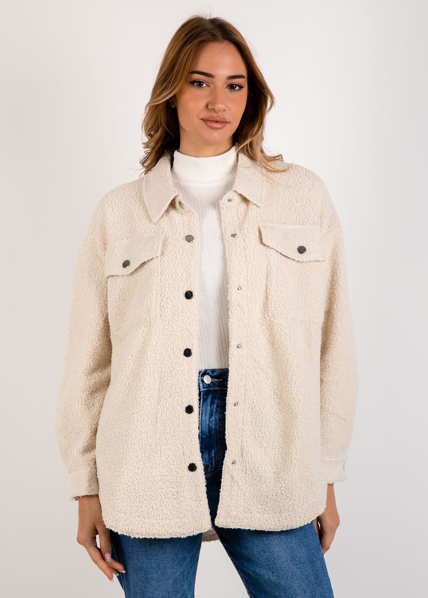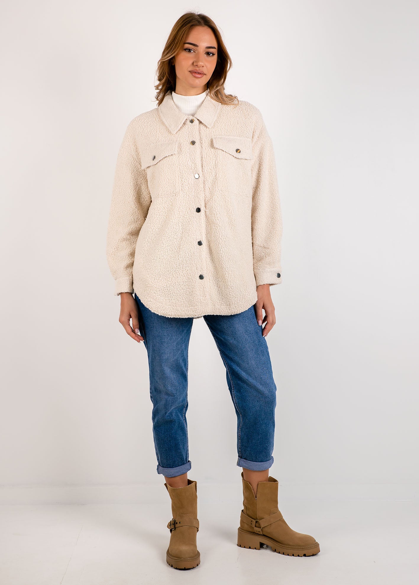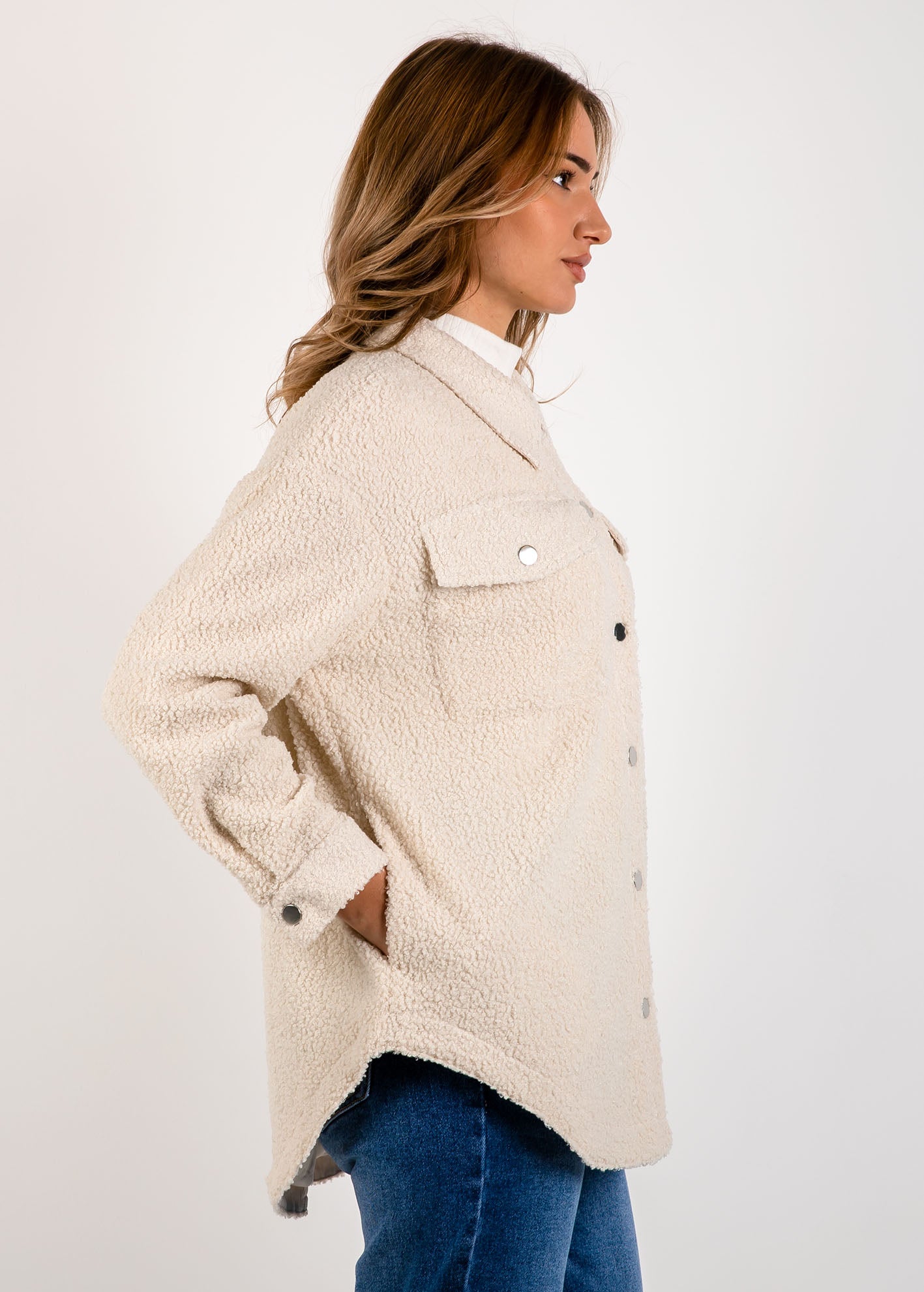 Τζάκετ όψη προβάτου με γιακά, μακρύ μανίκι και τσέπες patch με καπάκι στο στήθος. Κλείσιμο μπροστά με κουμπιά.