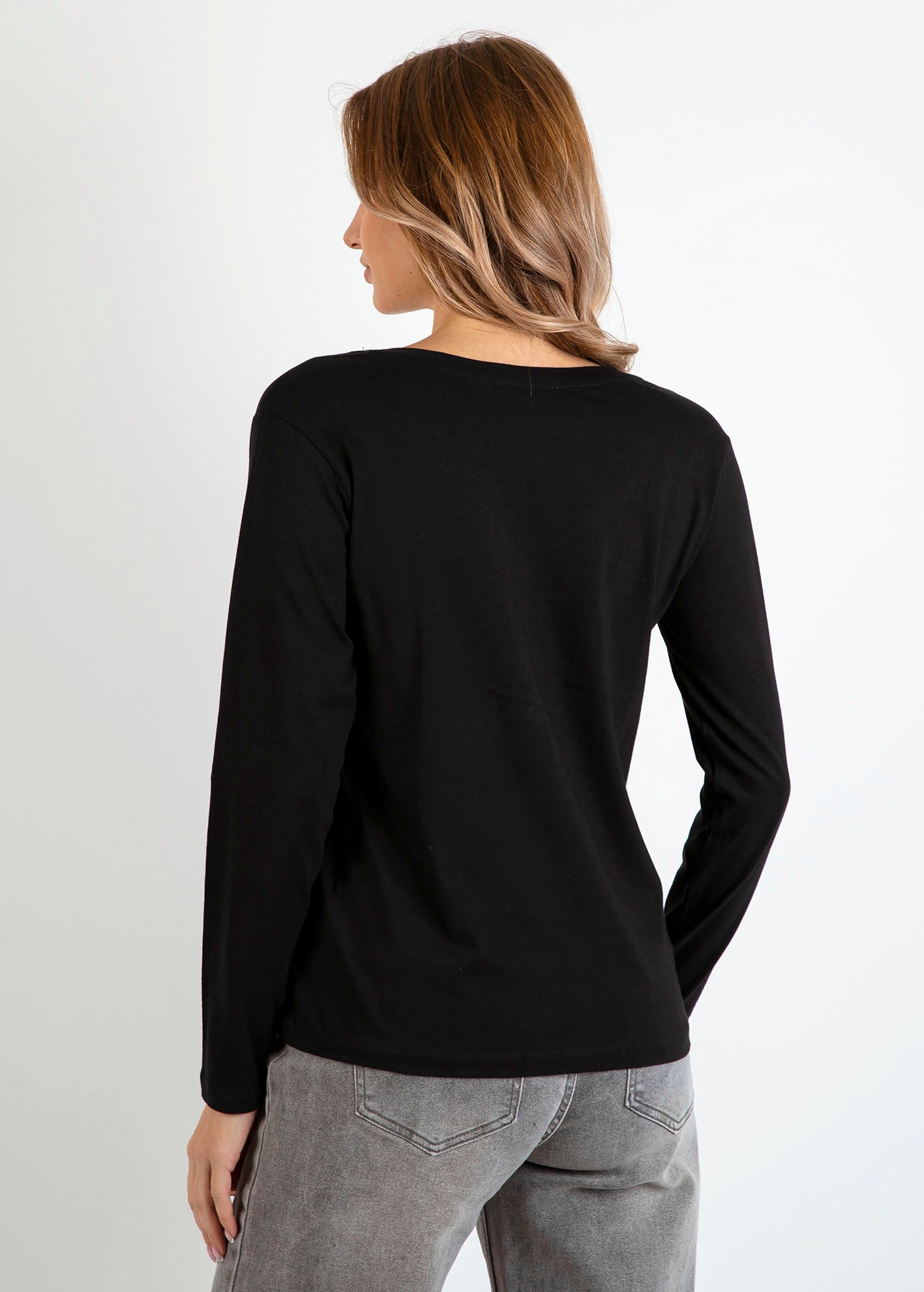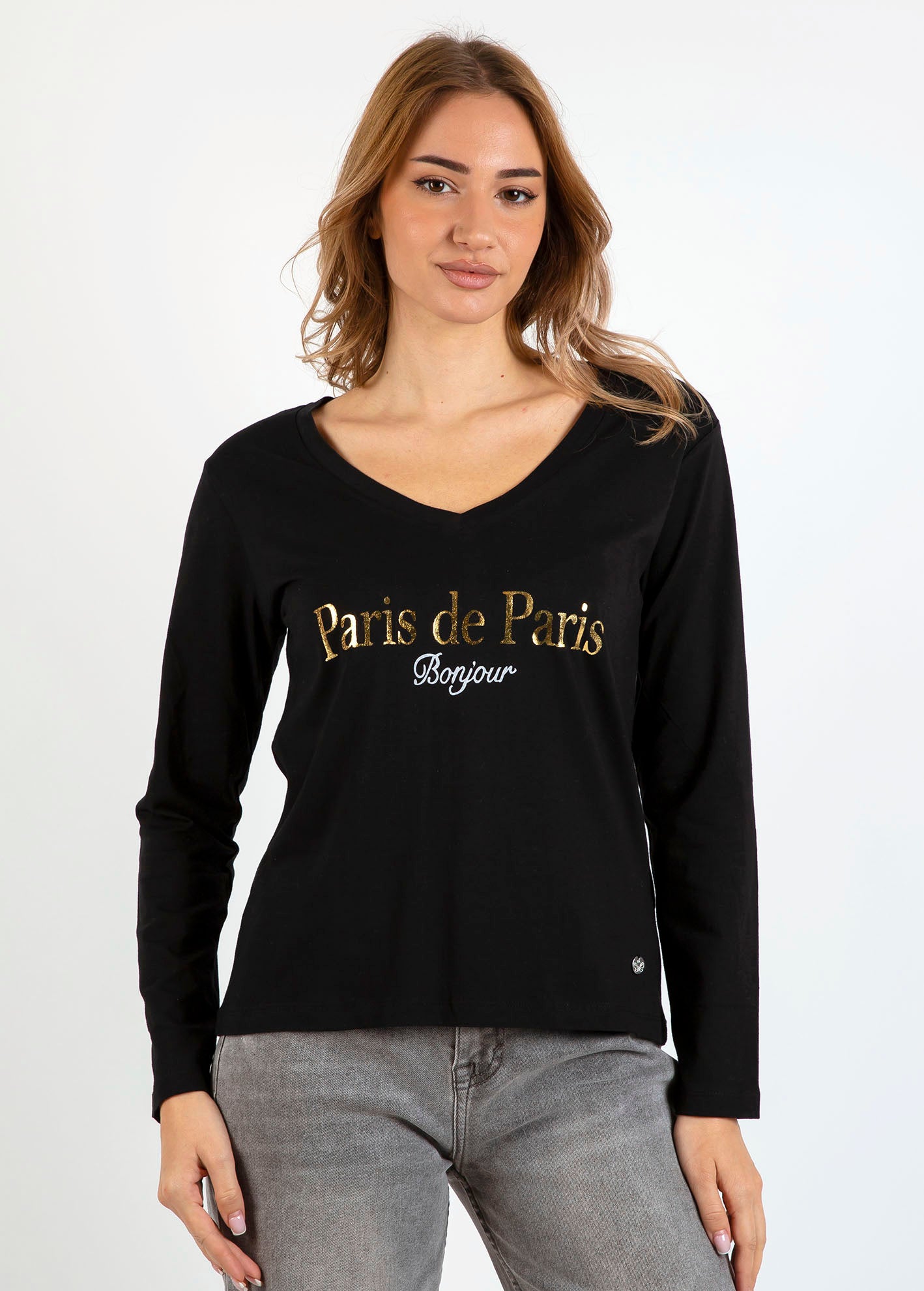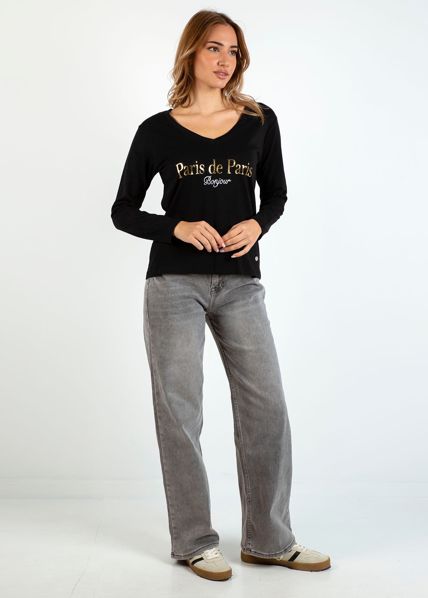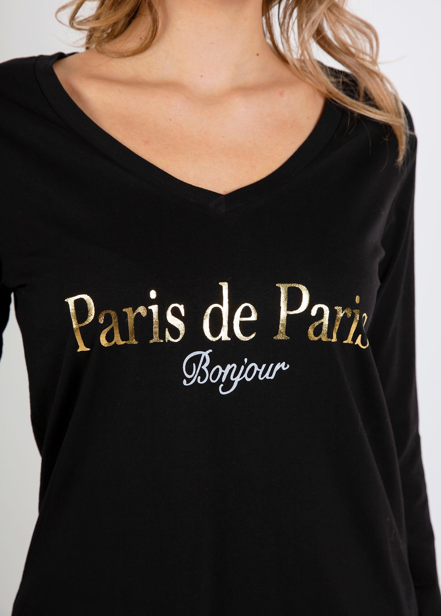 Γυναικεία μπλούζα 3/4 με τύπωμα 'Paris de Paris Bonjour'-BLACK