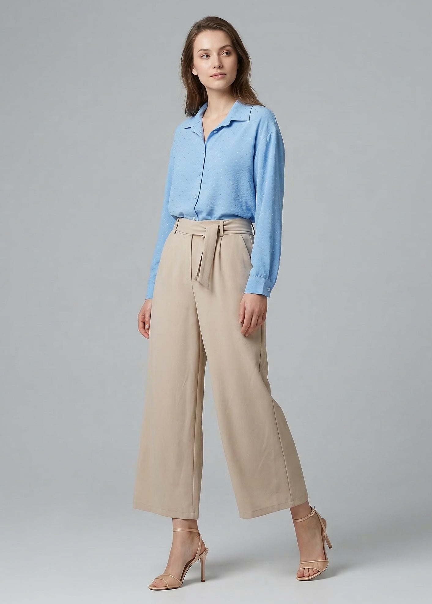 Πουκάμισο ριχτό διακοσμημένο με στρας, μακρύ μανίκι και γιακά. Κλείσιμο μπροστά με κουμπιά.