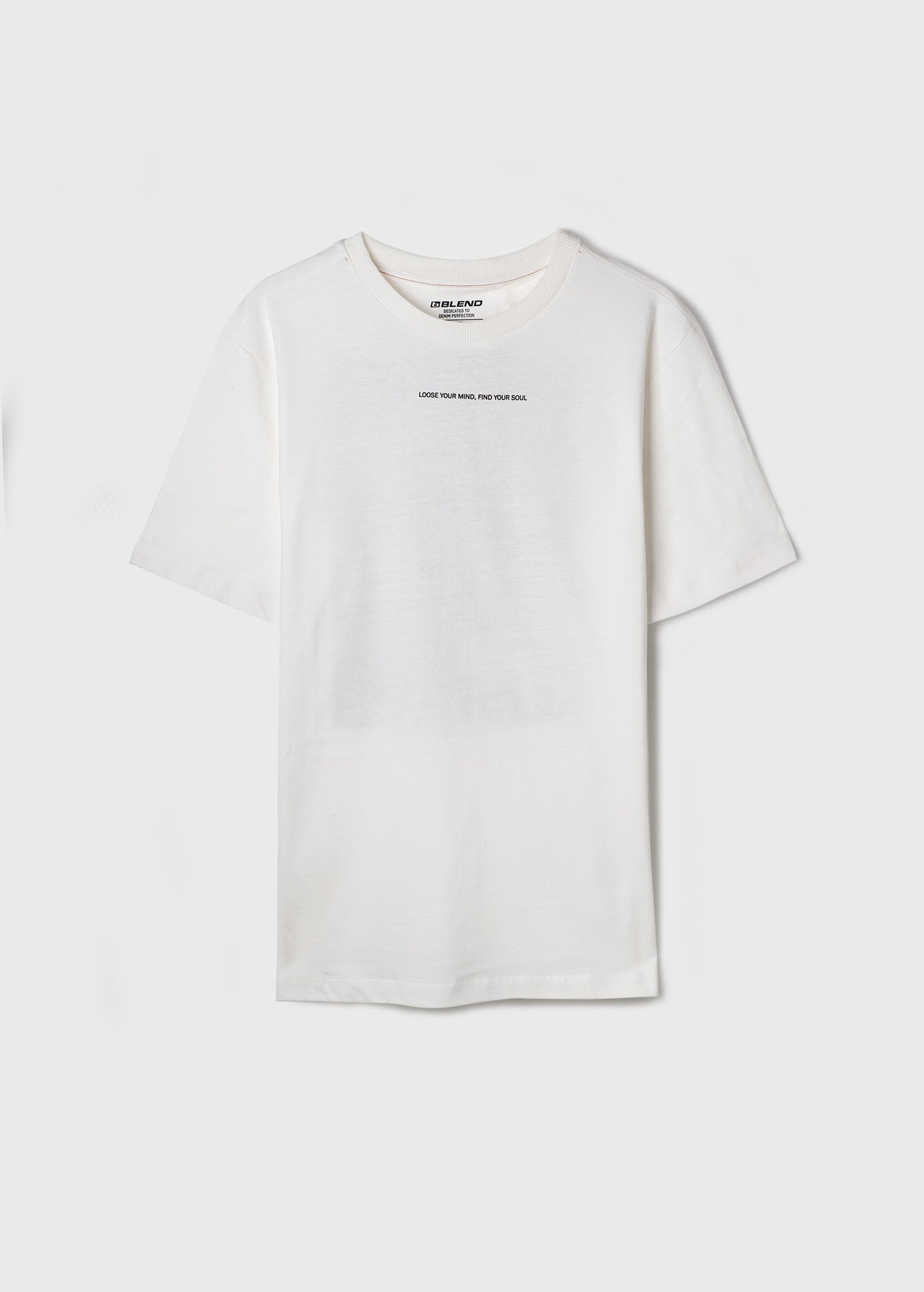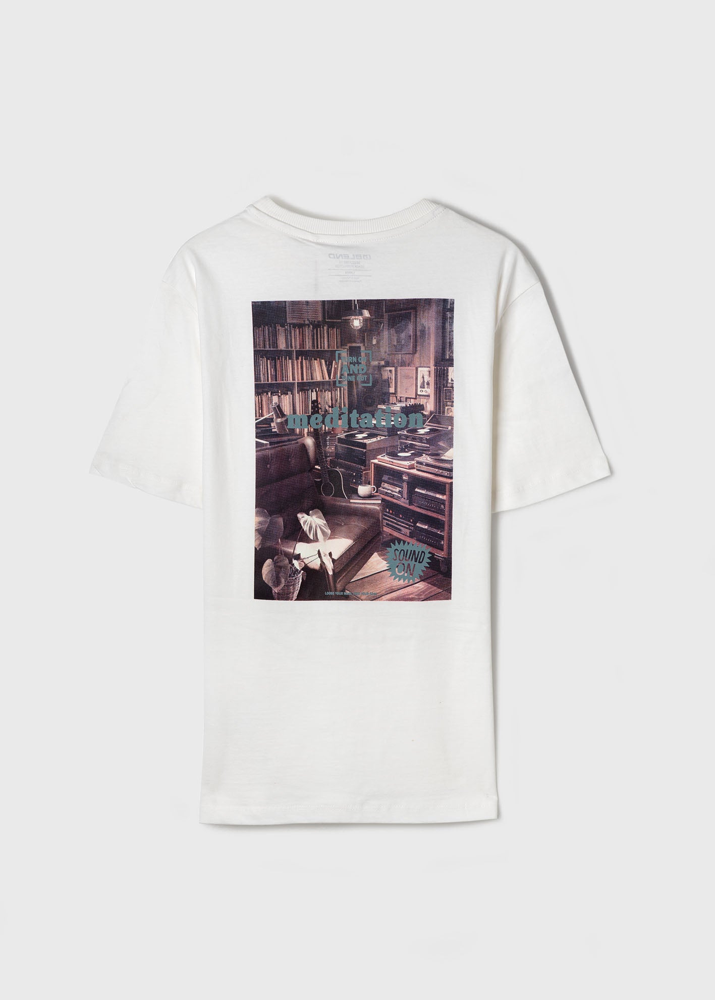Μπλούζα βαμβακερή με στρογγυλή λαιμόκοψη, κοντό μανίκι και σχέδιο με τύπωμα μπροστά σε αντίθεση.