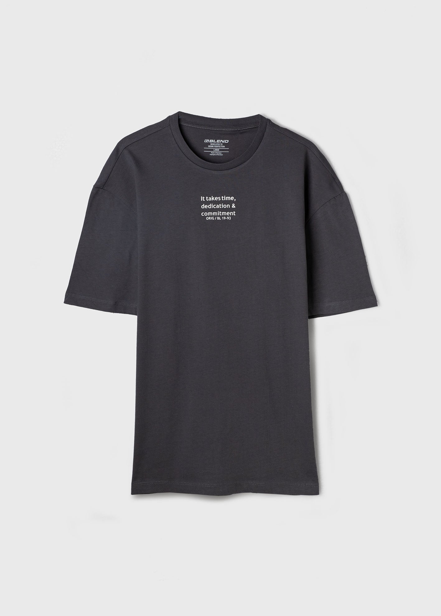 Μπλούζα oversized με κοντό μανίκι, στρογγυλή λαιμόκοψη και σχέδιο με τύπωμα μπροστά.