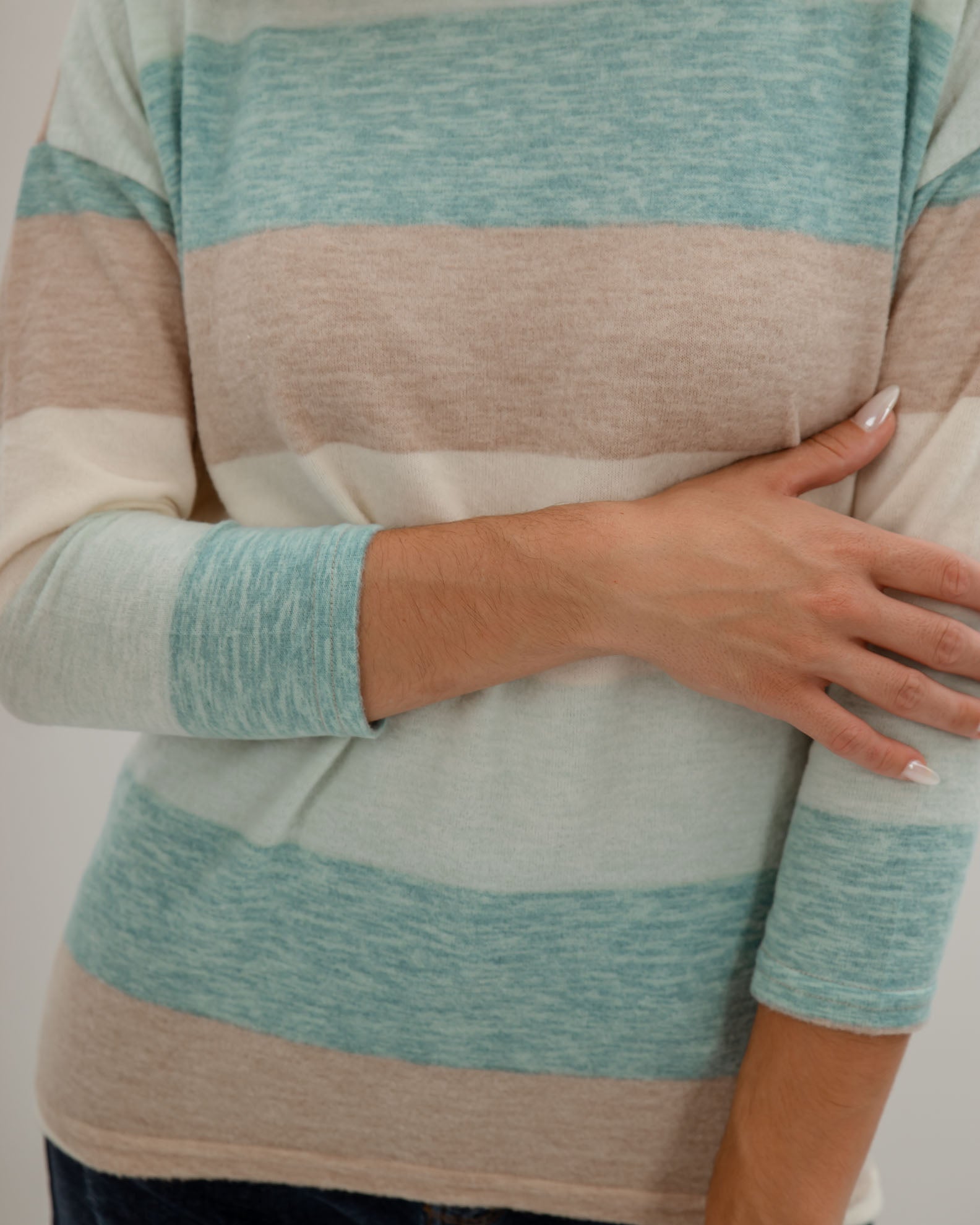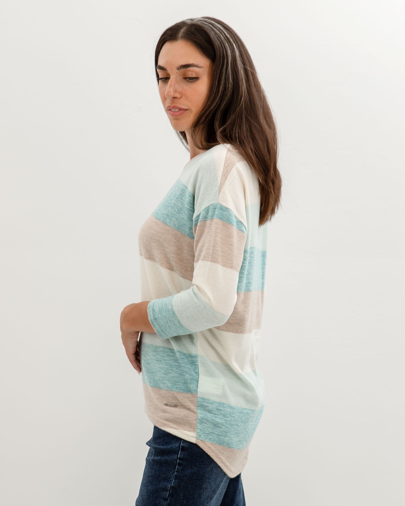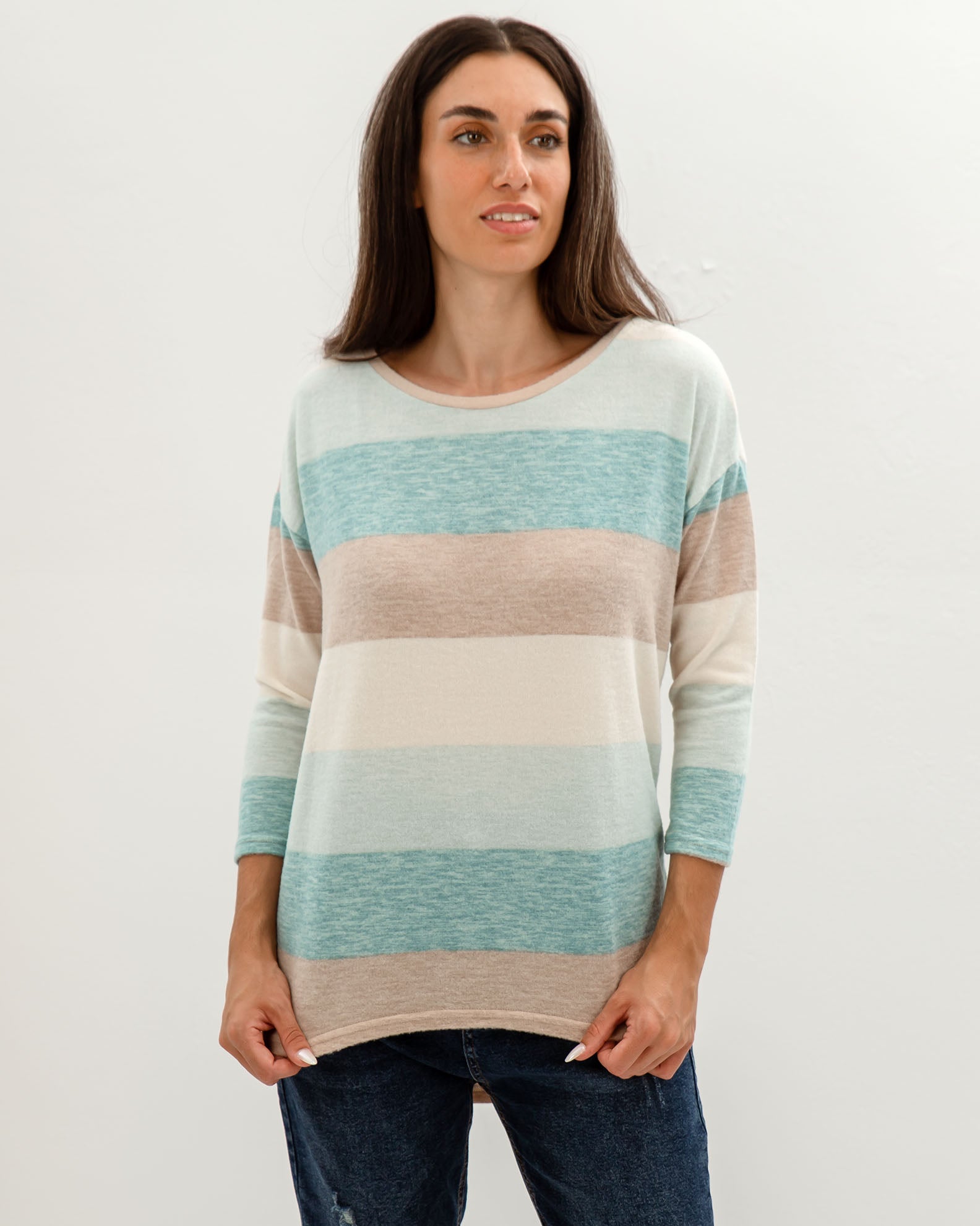 Γυναικεία ελαφριά πλεκτή μπλούζα 3/4 P 'Mi44a'-teal stripe