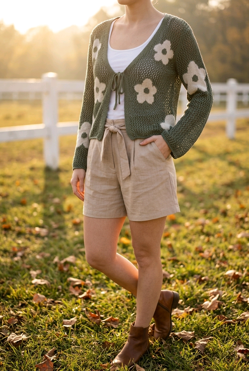 Ελαφριά πλεκτή ζακέτα με μακρύ μανίκι, V ντεκολτέ και σχέδιο με κεντητά λουλούδια.
