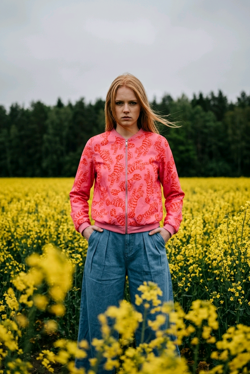 Ελαφρύ τζάκετ με σχέδιο, μακρύ μανίκι, ριπ τελείωμα και κλείσιμο μπροστά με φερμουάρ.