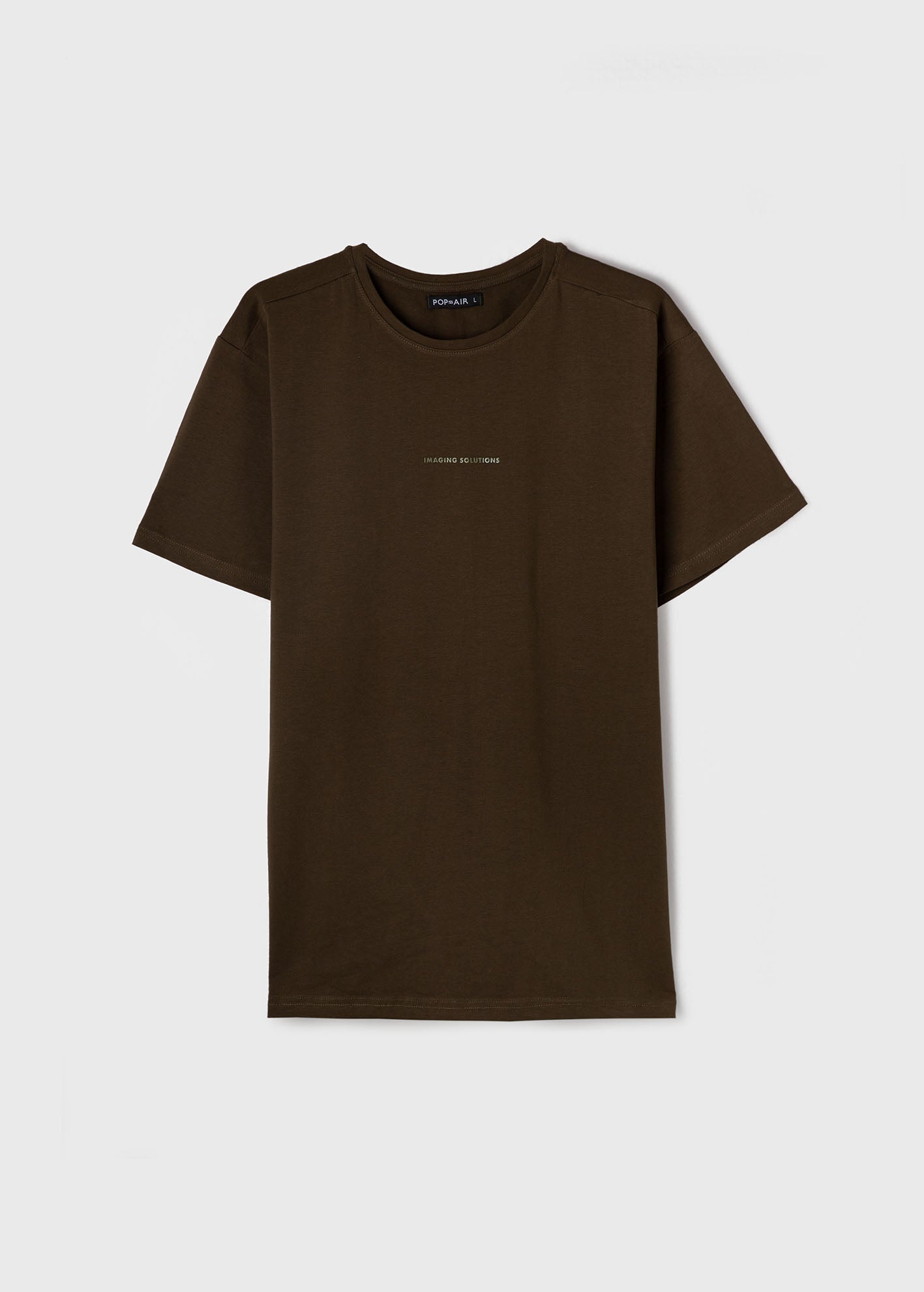 Ανδρική μπλούζα ελαστική με τυπωμα 'Imagine solution'-KHAKI
