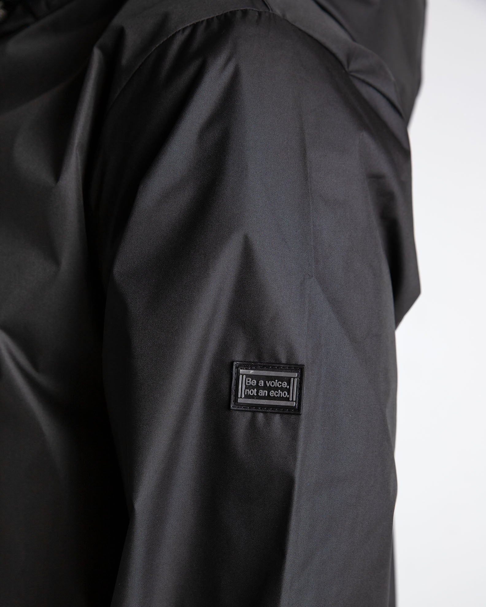 Μπουφάν με όρθιο γιακά και ρυθμιζόμενη κουκούλα. Μακρύ μανίκι που καταλήγει σε μανσέτα με πατ. Τσέπες στους γοφούς και τσεπη με φερμουάρ στο στήθος. Κλείσιμο μπροστά με φερμουάρ.