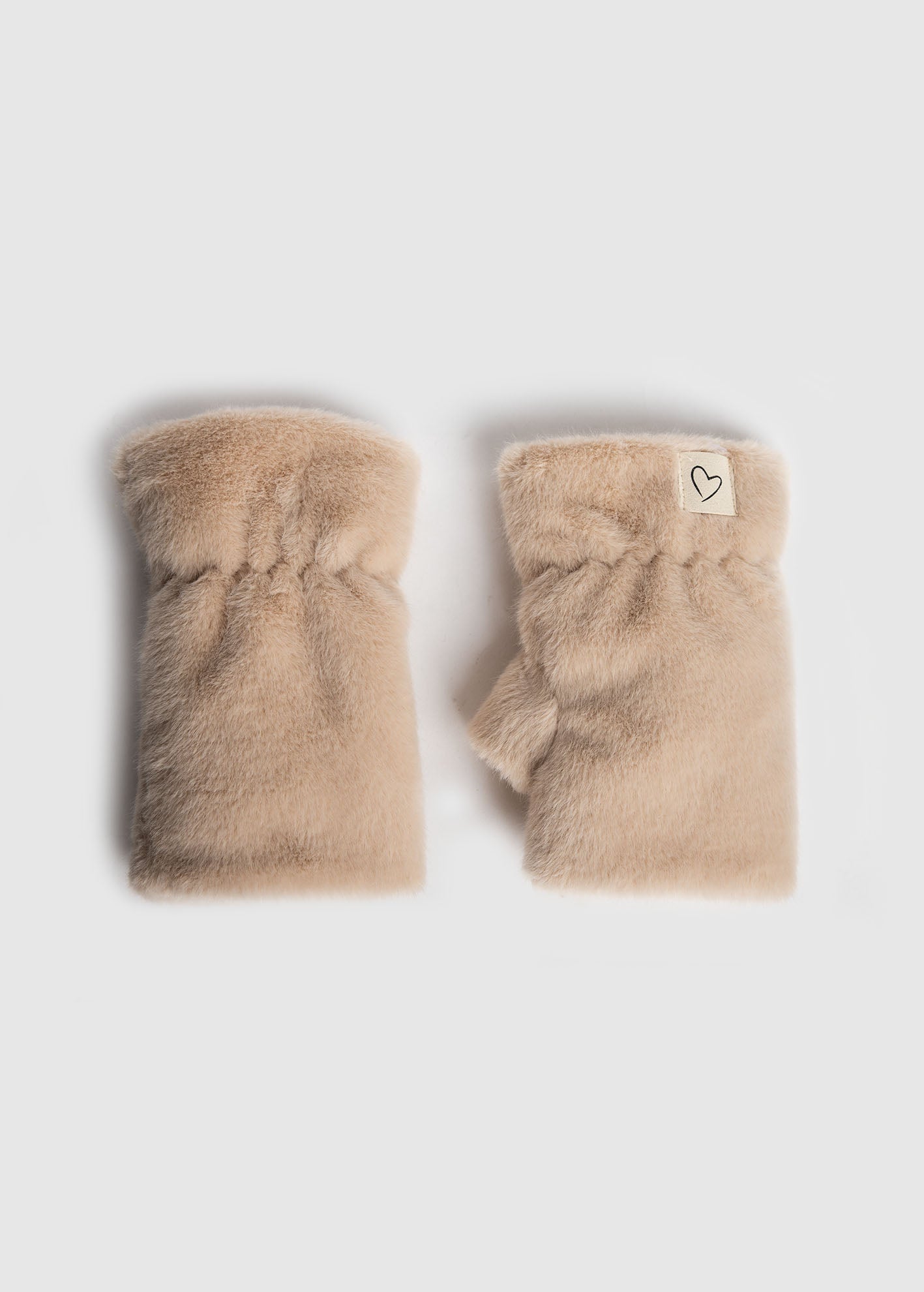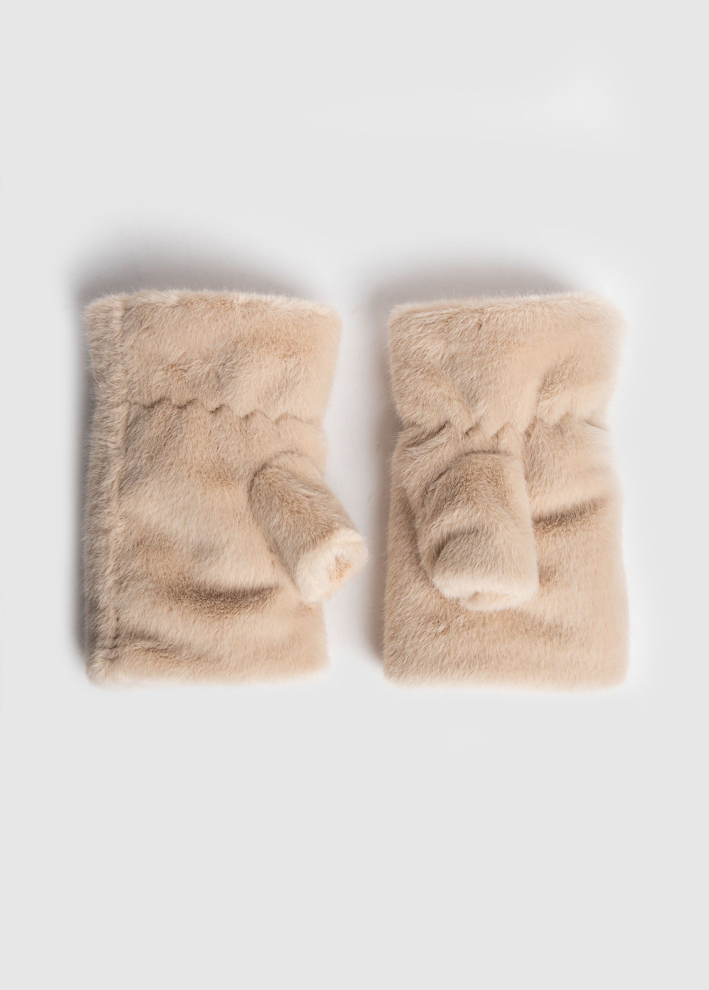 Γυναικεία γάντια όψη γούνας-beige