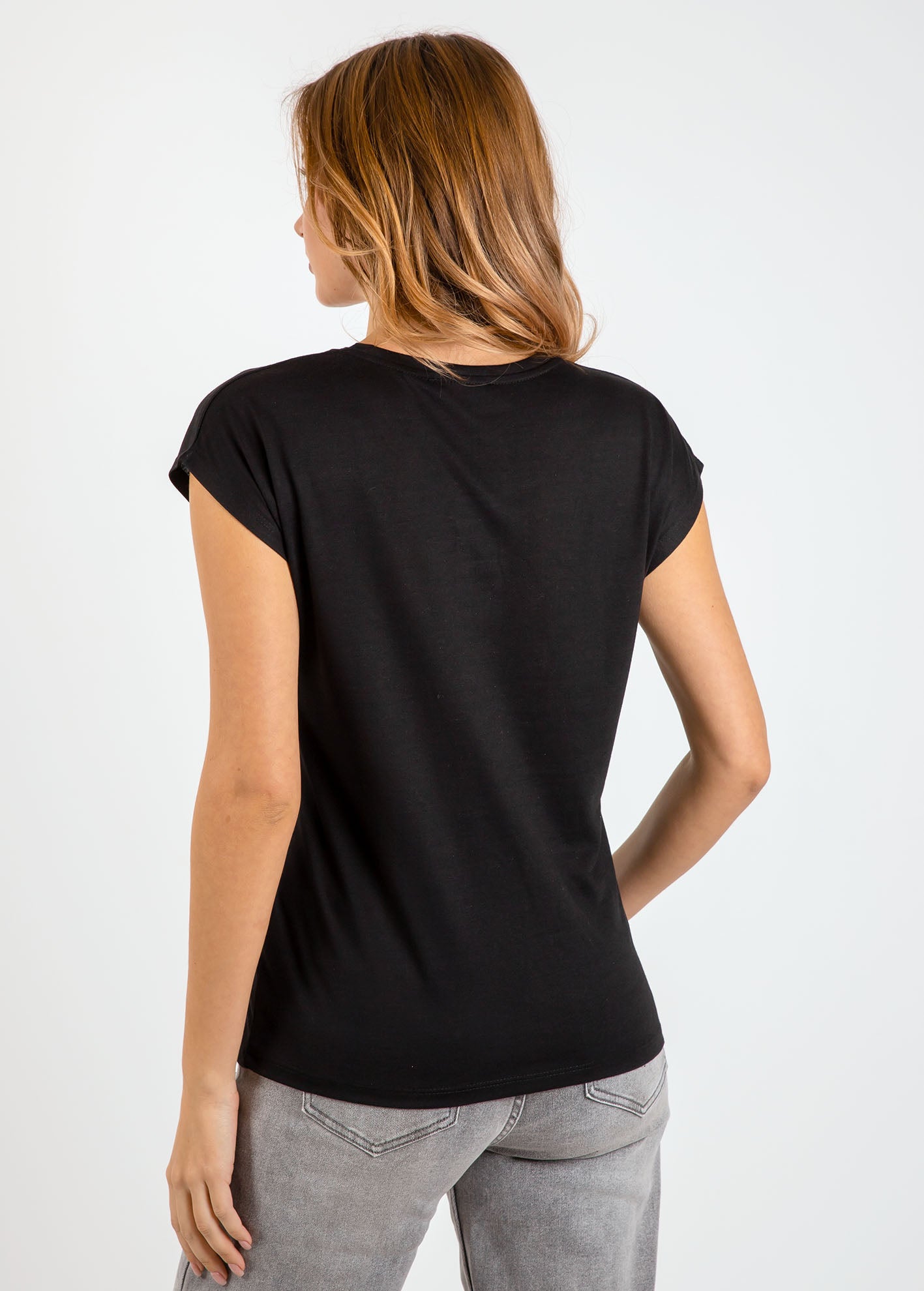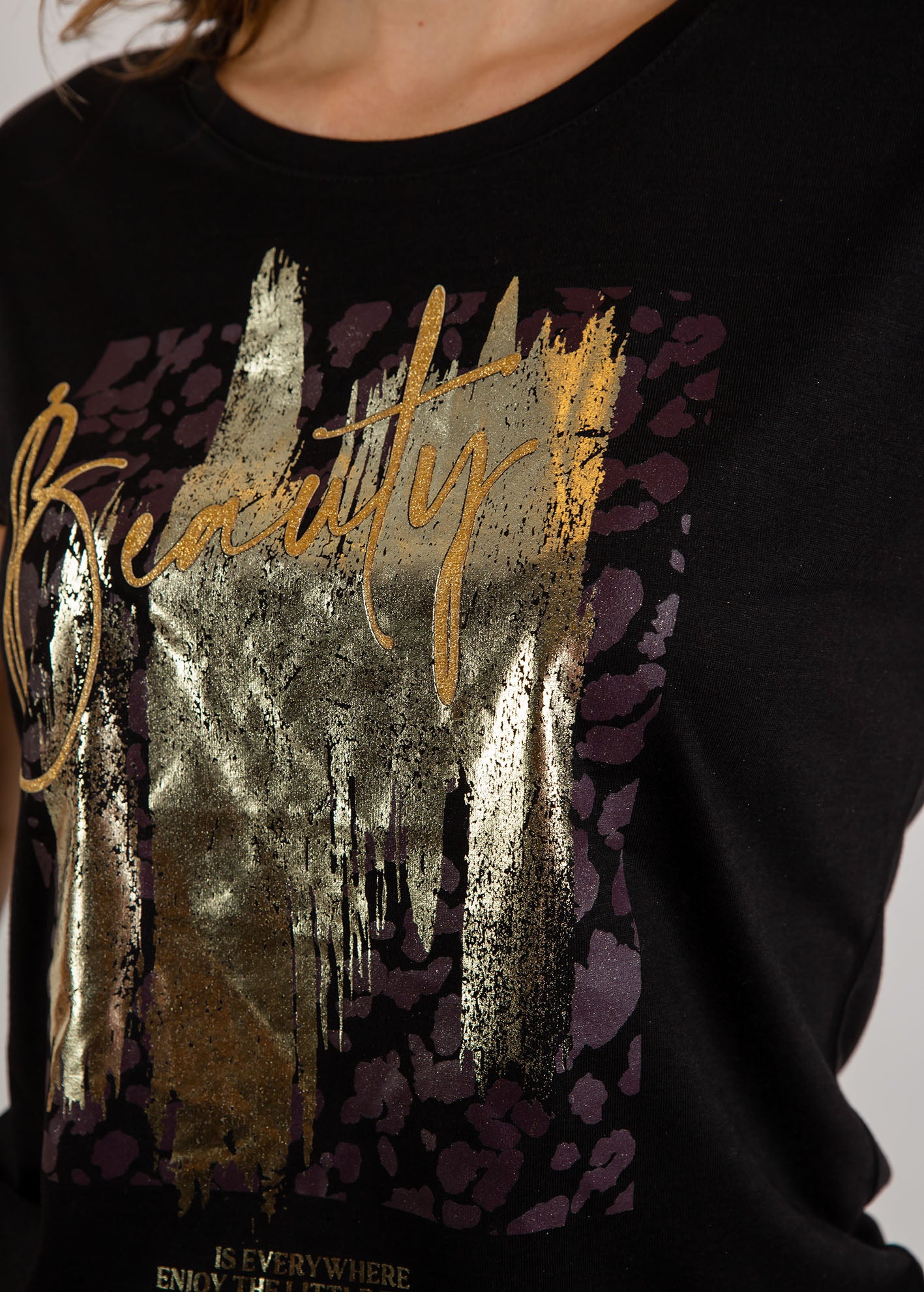 Γυναικεία μπλούζα κοντομάνικη με τύπωμα 'Be44auty'-black