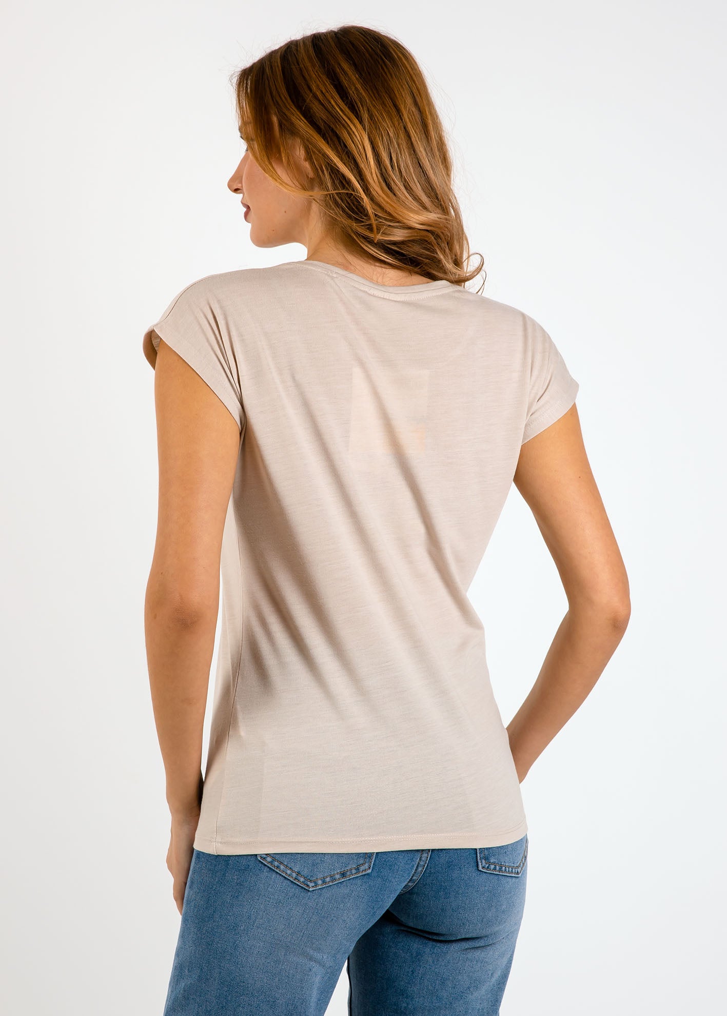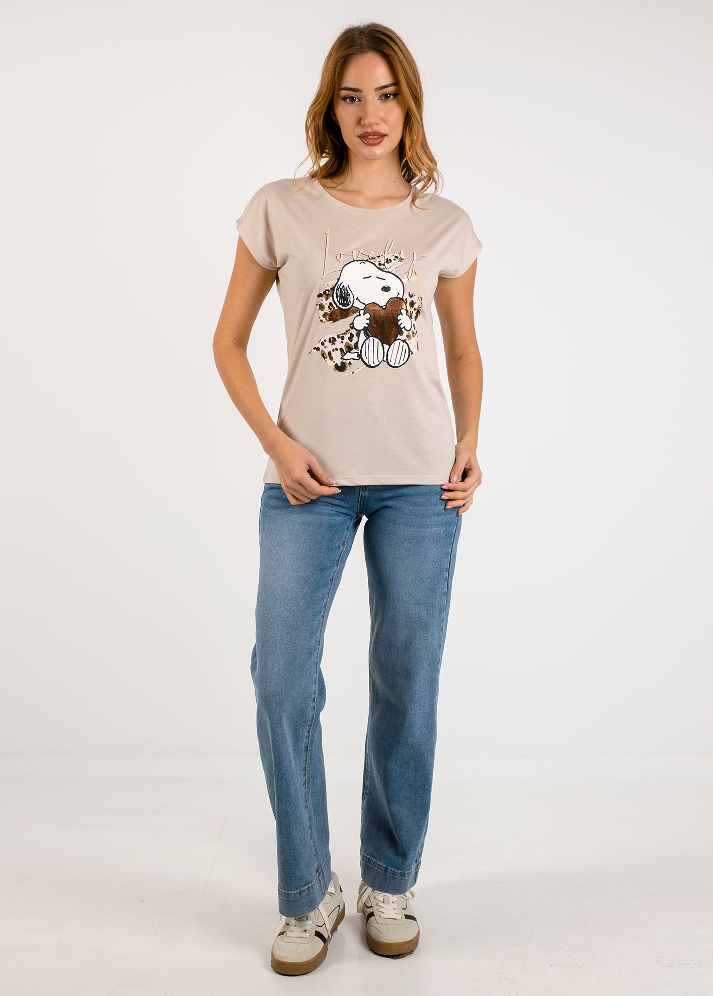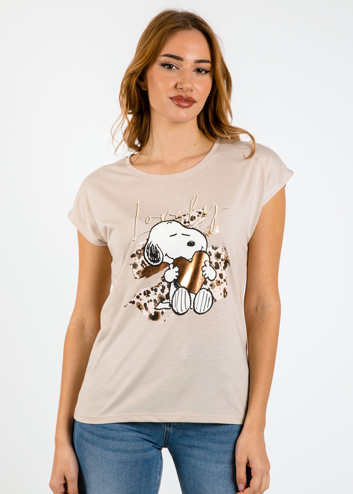 Γυναικεία μπλούζα κοντομάνικη με τύπωμα 'Ti44lly'-beige
