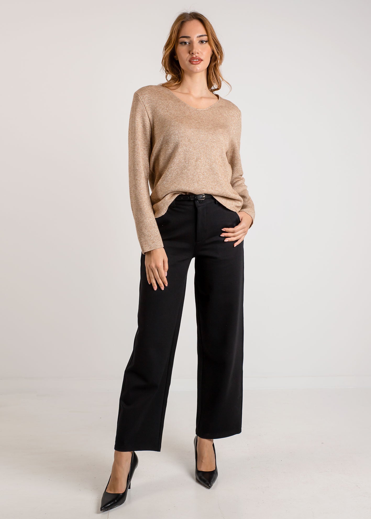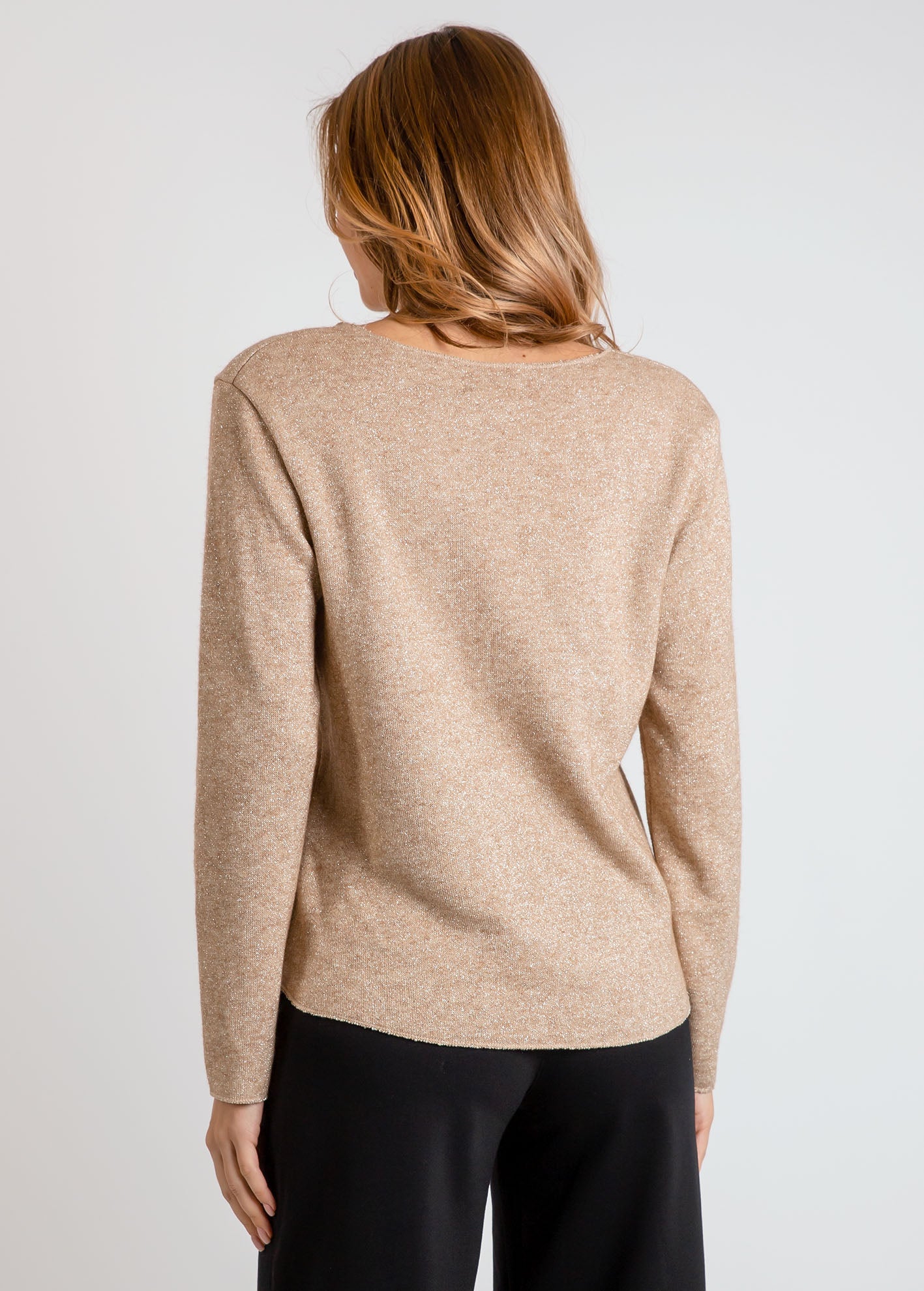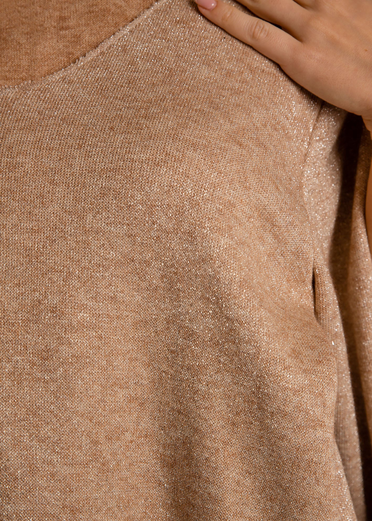 Γυναικεία μπλούζα μακρυμάνικη με μεταλλιζέ νήμα 'La44na'-camel glitter