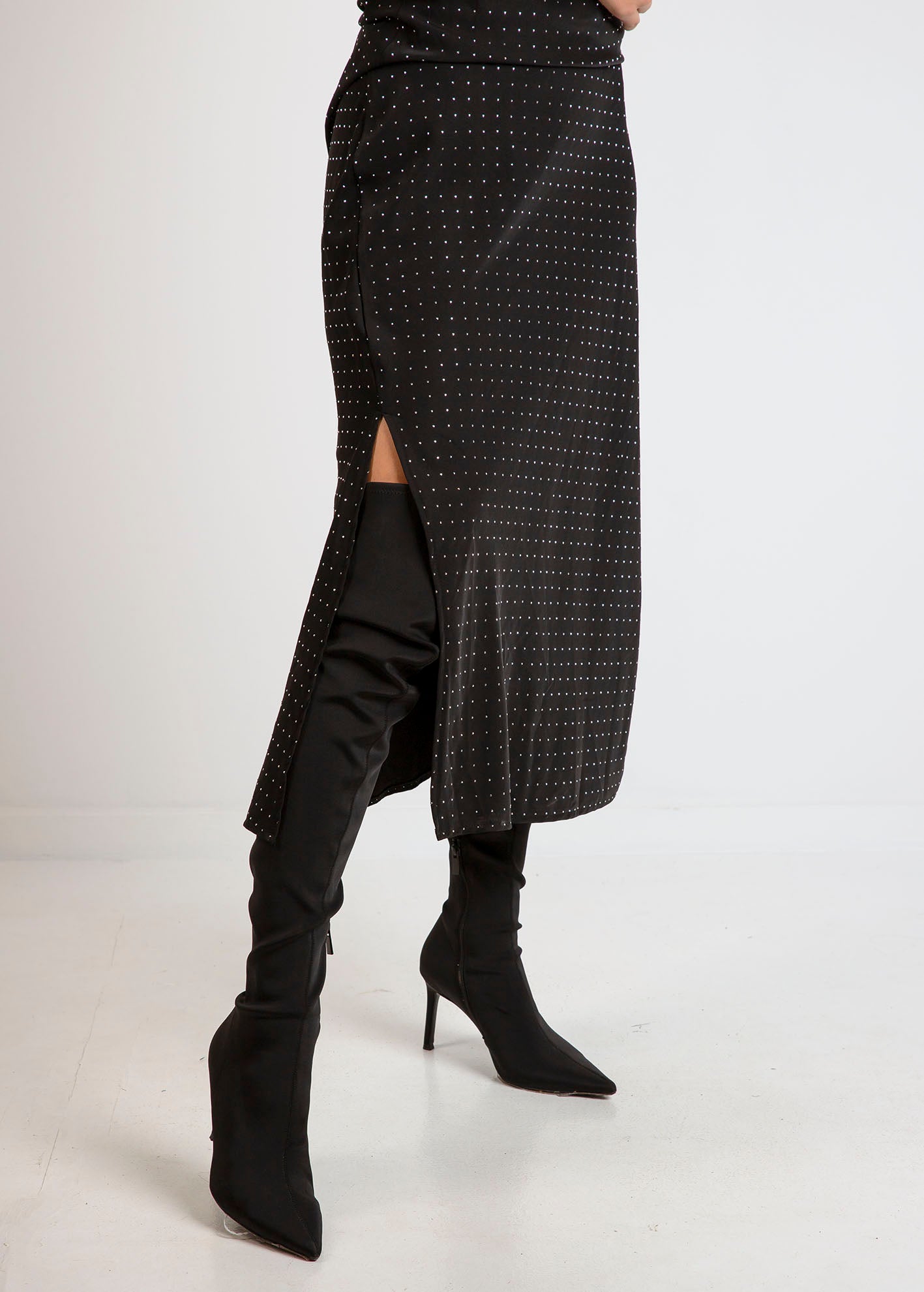 Μάξι φόρεμα με glitter και σχίσιμο 'Qu44eenie'-black glitter stones