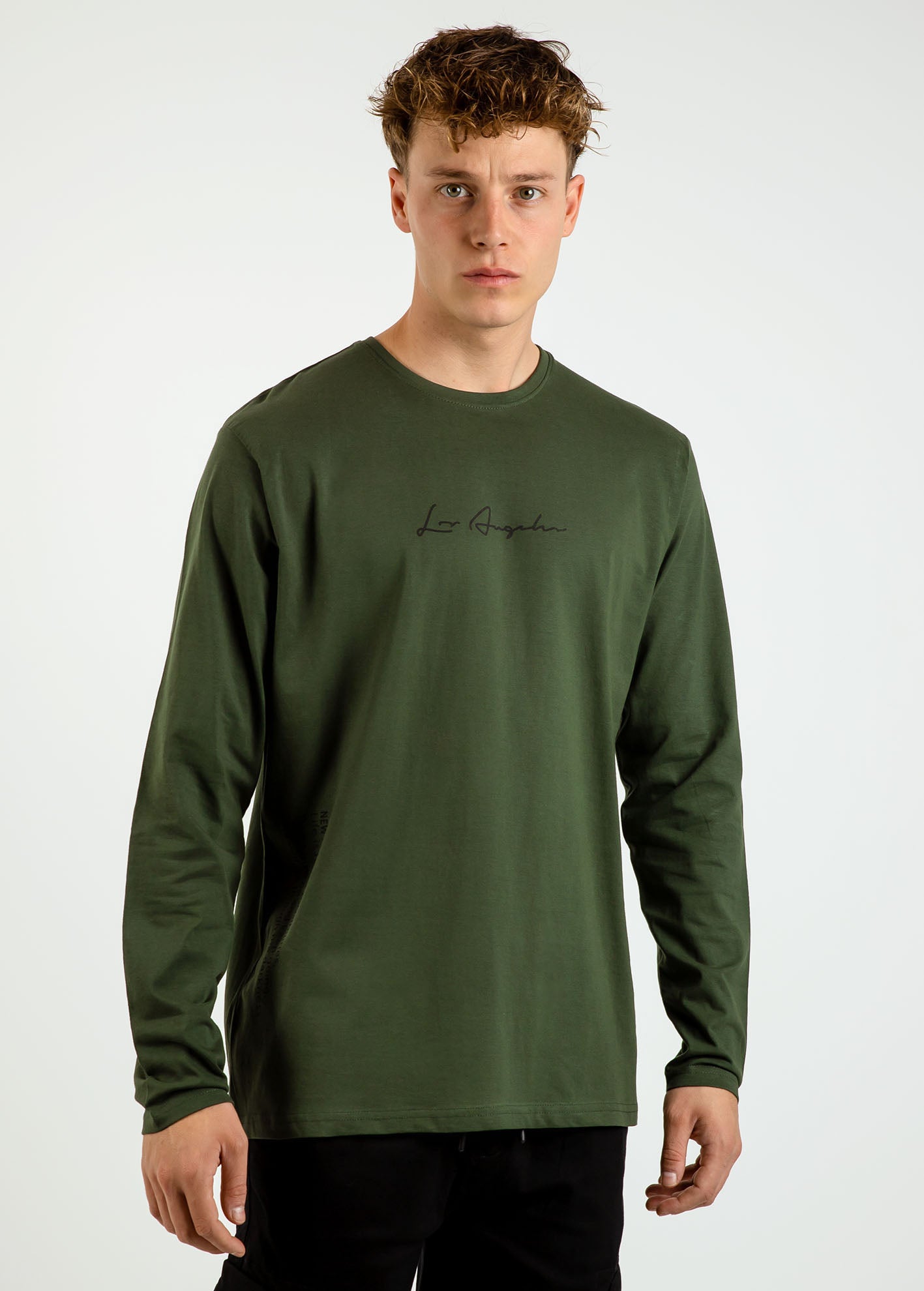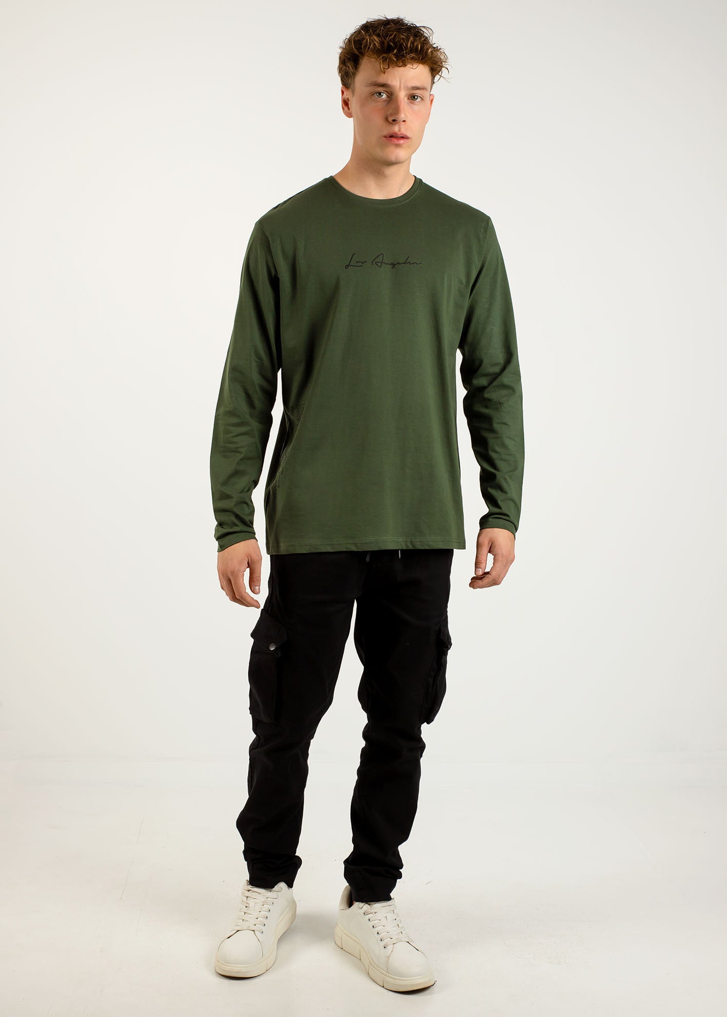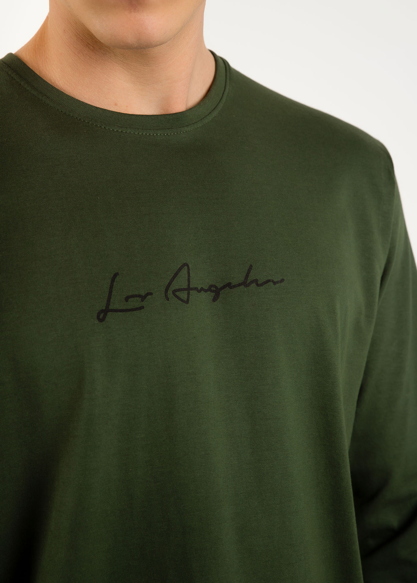 Ανδρική μπλούζα με μακρύ μανίκι και τύπωμα "Los Angeles"-KHAKI
