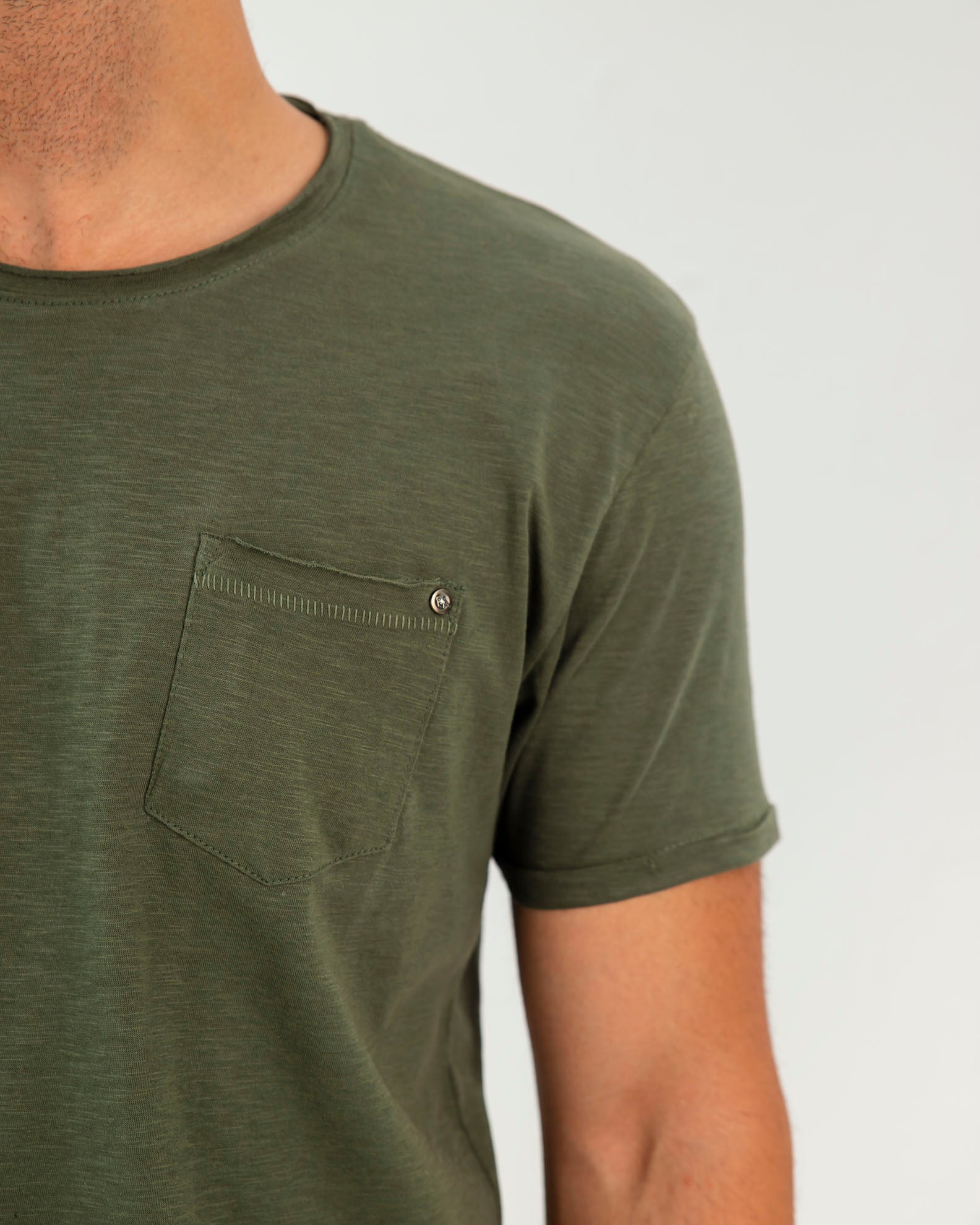 Μπλούζα με στρογγυλή λαιμόκοψη και κοντό μανίκι. Τσέπη patch στο στήθος.