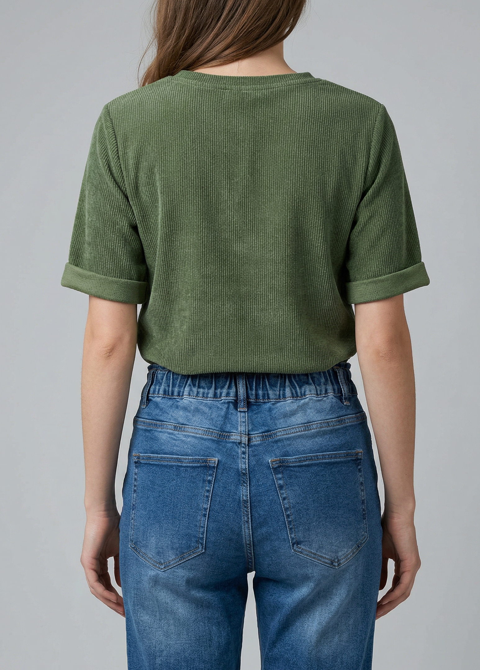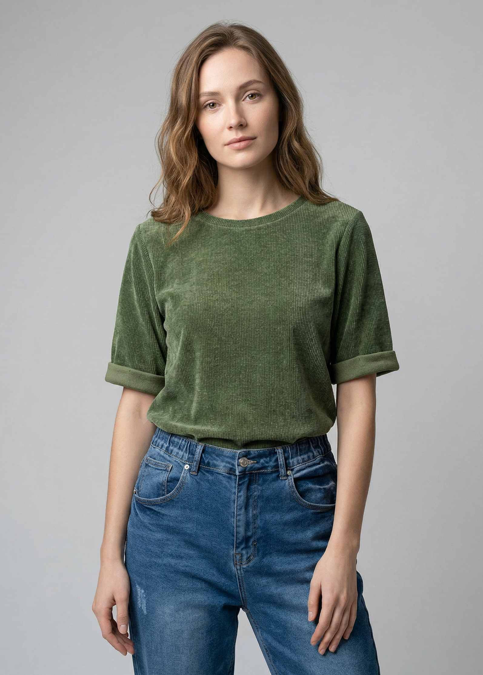 Γυναικεία ελαφρία μπλούζα όψη κοτλέ 'Po44lly'-SOFT GREEN