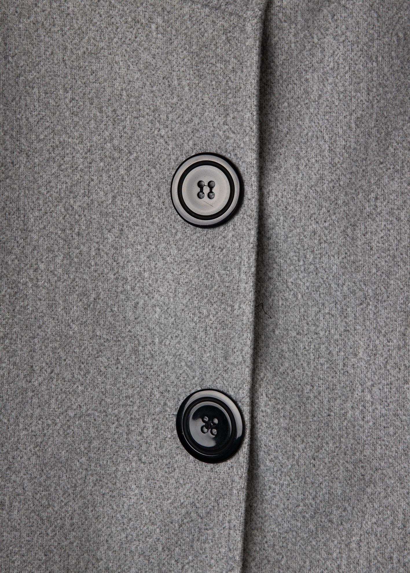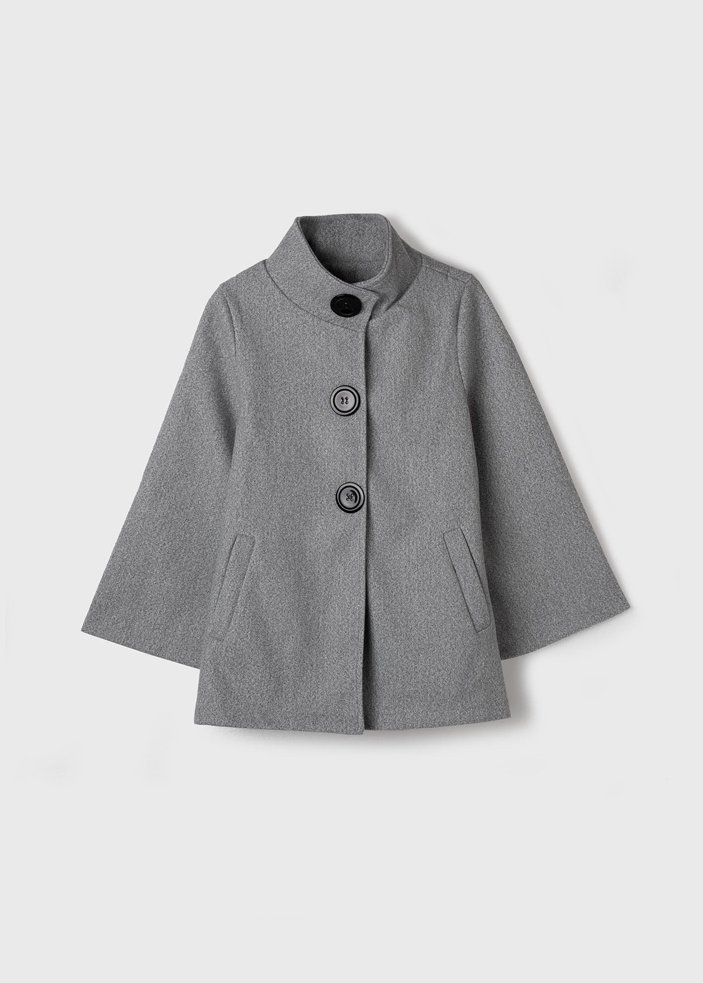 Κοντό παλτό με όρθιο γιακά και μακρύ μανίκι. Μπροστινές τσέπες. Εσωτερική φόδρα στον ίδιο τόνο. Κλείσιμο μπροστά με κουμπιά.