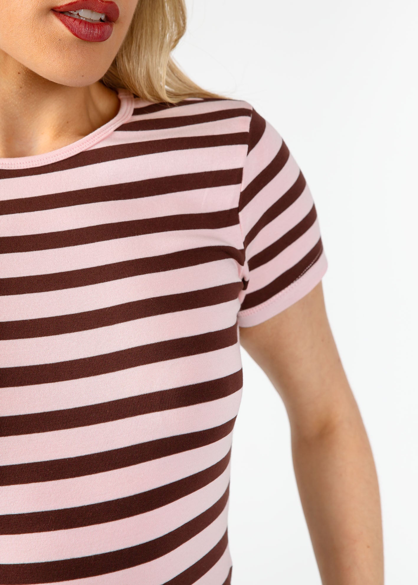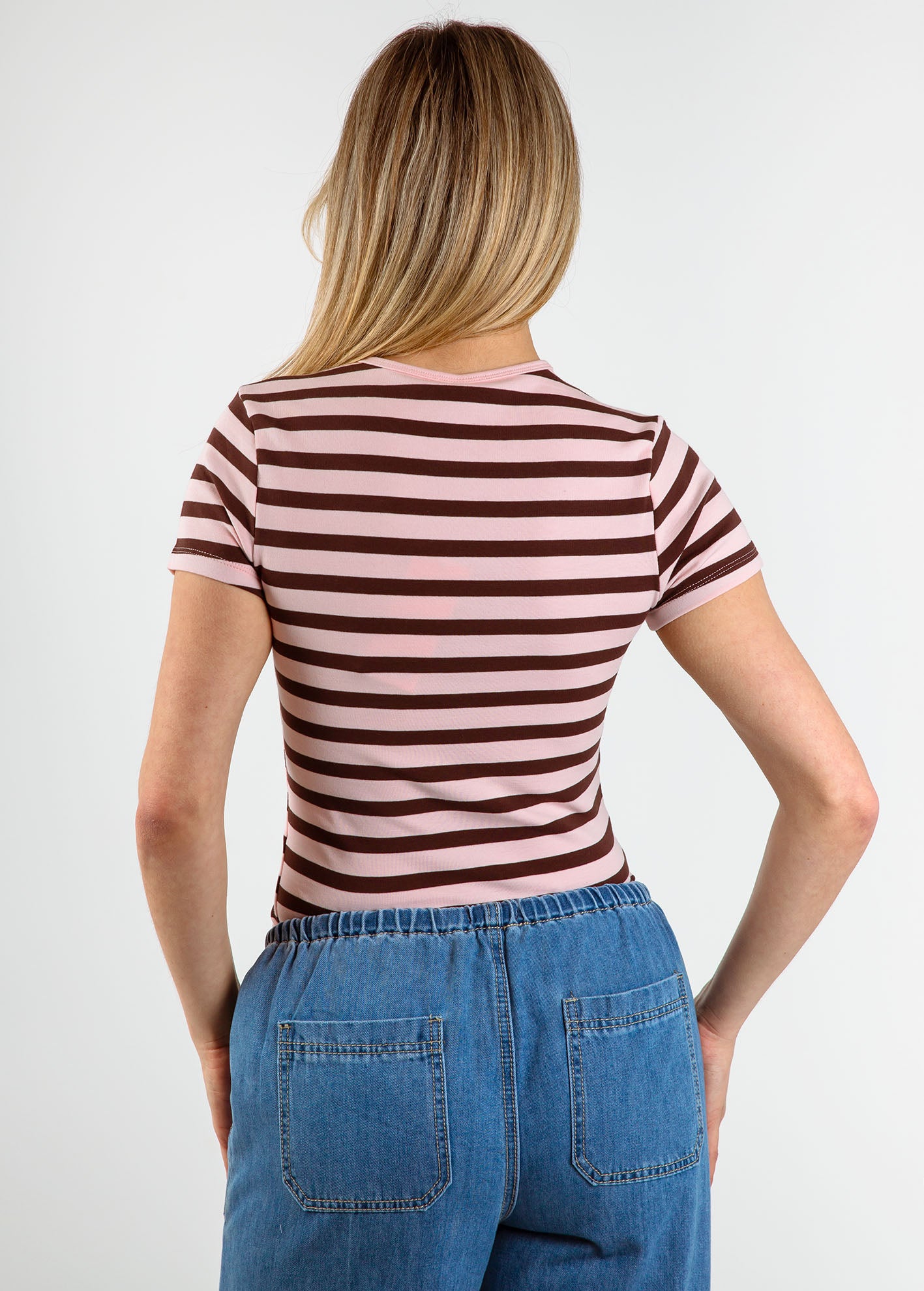 Μπλούζα με ριγέ σχέδιο κοντό μανίκι και στρογγυλή λαιμόκοψη.